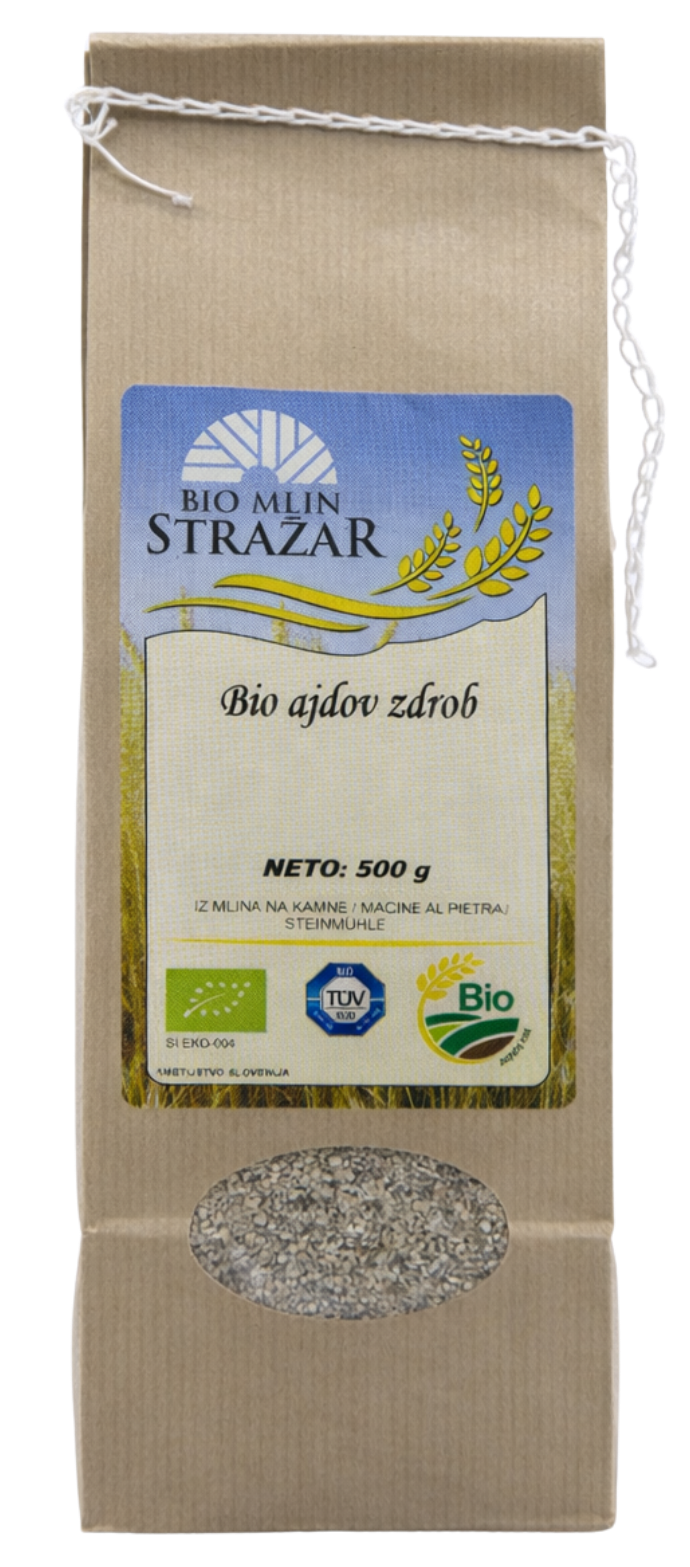 Bio ajdov polnozrnati zdrob pridobljen z mletjem iz ekološke ajde. Lahko nadomesti pšenični ali pirin zdrob. Primeren za izdelavo cmokov, peciva, narastkov, pogač..