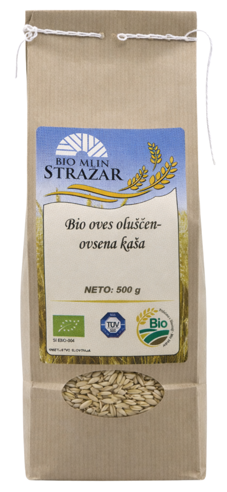 Bio oves oluščeni – ovsena kaša oziroma ovsena kaša, ki je oluščeni oves, se uporablja kuhana kot prilogo glavni jedi, za pripravo polpetov ali drugih jedi kot nadomestilo za riž.